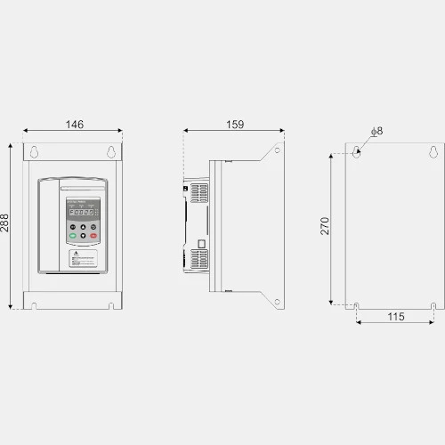 Ponadto softstart 30A F&F charakteryzuje się funkcjami dodatkowymi takimi jak: automatyczny rozruch silnika, automatyczny restart w przypadku błędu, automatyczny wielokrotny rozruch. Urządzenie przystosowane jest do montażu pionowego na ścianie lub płycie montażowej. Układ łagodnego rozruchu SF-150 posiada obudowę o wymiarach 270 x 146 x 159mm.