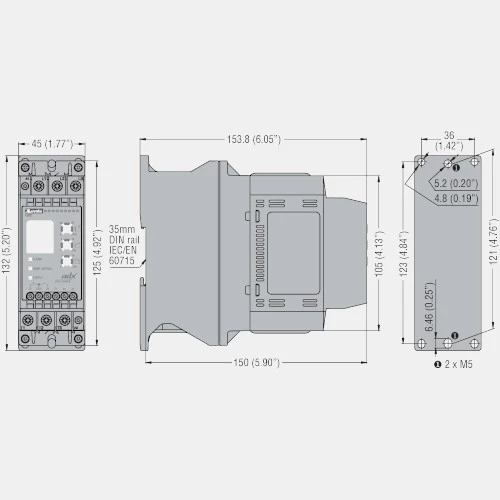Całościowo sofst starter ADXC został zamknięty w obudowie o stopniu ochrony IP20 i wymiarach 132 x 45 x 153,8 mm.