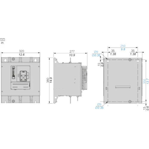 3-fazowy układ łagodnego rozruchu ATS480C25Y serii ATS480 Altivar marki Schneider Electric. Softstarter ATS480C25Y 250 A współgra z silnikami o mocy od 75 kW do 250 kW. Trójfazowy soft starter o częstotliwości zasilania 50...60Hz, oraz napięciu zasilania 208...690 VAC. Prąd znamionowy tego urządzenia wynosi 250A ND/ 210A HD, natomiast znamionowe napięcie udarowe wytrzymywane jest równe 6kV. Napięcie sterujące urządzenia łagodnego rozruchu jest równe 24 VDC. Softstart ATS480C25Y wyposażony jest w komunikację Modbus RTU oraz porty RJ45, RS485. Temperatura pracy ATS480C25Y wynosi -15…+40 °C. Softarter ATS480 jest zaopatrzony w stopień ochrony IP20. Wymiary układu łagodnego rozruchu ATS480C25Y: 380mm x320mm x 277mm, natomiast jego waga to 18,2 kg. Softstart ATS480Altivar można rozbudować o: moduł komunikacyjny dla Profibus DP V1, moduł komunikacyjny dla Profinet, moduł komunikacyjny dla Modbus TCP/EtherNet/IP, moduł komunikacyjny dla kaskada CANopen, moduł komunikacyjny dla CANopen Sub-D oraz moduł komunikacyjny dla CANopen open style.
