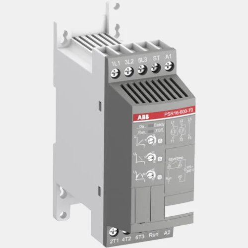 Układ łagodnego rozruchu PSR16-600-70 o mocy 7,5 kW i poborze prądu 16 A dedykowany jest do współpracy z trójfazowymi silnikami asynchronicznymi. Soft start PSR zasilany jest napięciem 400V AC o częstotliwości 50/60Hz. W wyposażeniu softstartu ABB został zastosowany stycznik by-pass oraz zabezpieczenie przed przeciążeniem. PSR16-600-70 ABB cechuje się prostą konfiguracją oraz łatwym montażem. Wykonany został w obudowie o stopniu ochrony IP20 i wymiarach 120 x 45 x 128 mm, natomiast waga produktu wynosi jedynie 0,4 kg. Softstarter PSR16-600-70 PSR ABB zapewnia bezpieczną i niezawodną pracę silnika asynchronicznego.