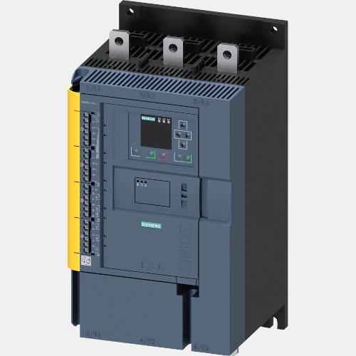 Softstart 3RW5547-6HF04 Siemens dedykowany do rozruchu 3-fazowych silników elektrycznych. Rozrusznik łagodnego rozruchu 3RW5547-6HF04 cechuje się sterowaniem w 3-fazach, napięcie starowanie wynosi dla 24VAC/24VDC. Urządzenie zasilane jest napięciem 240...480 VAC. Moc softstartera 3RW55476HF04 wynosi odpowiednio 250 kW i 400kW przy wew. Trójkąt. Prąd wyjściowy szacowany jest na poziomie 470A. Softstart Sirius 3RW5547-6HF04 został wyposażony w 3 wejścia binarne, 4 wyjścia cyfrowo oraz 1 wyjście analogowe prądowo-napięciowe. W standardzie układy łagodnego rozruchu Sirius 3RW55 dysponują wbudowanym stycznikiem by pass oraz panelem operatorskim. Inżyniera tych softstarterów oparta jest na środowisku TIA Portal. Producent deklaruje możliwość pracy tych urządzeń w zakresie temperatur od -25 do +60 stopni Celsjusza. Soft starter Sirius Siemens 3RW5547-6HF04 posiada przyłącze śrubowe a jego wymiary to 393 x 210 x 203mm. Waga tego urządzenia wynosi 10,9kg.