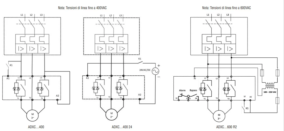 Softtarty ADXC Lovato to seria kompaktowych urządzeń z zabudowanym przekaźnikiem bypass. ADXC Lovato Electric dedykowane są do współpracy z trójfazowymi silnikami asynchronicznymi o prądzie do 45A. Dodatkowo zostały one wyposażone w zabezpieczenie przed nieprawidłową kolejnością faz oraz przegrzaniem.