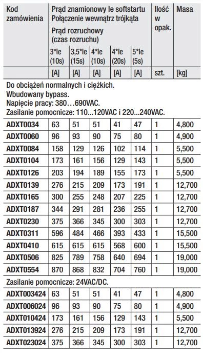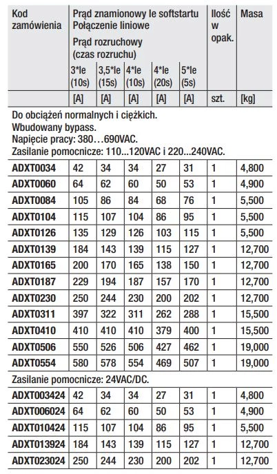 Układy łagodnego rozruchu ADXT znajdują swoje zastosowanie w aplikacjach, gdzie wymagana jest wysoka wydajność, niezawodność urządzenia oraz wytrzymałość. Urządzenia sprawdzą się w aplikacjach z ciężkim obciążeniem m.in: wentylatorach, kruszarkach, sprężarkach śrubowych, śmigłach, wirówkach, piłach taśmowych, młynach.