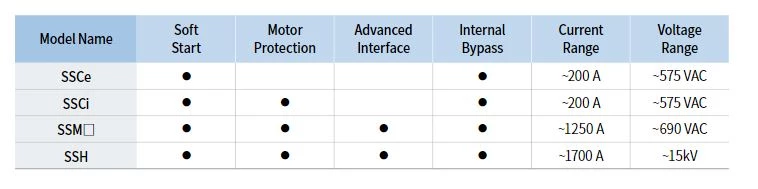 LS oferuje softstartery w wykonaniu ekonomicznym, standardowym oraz do wysokich napięć. Dostępne są urządzenia z zabudowanym bypassem oraz szerokimi możliwościami komunikacyjnymi.