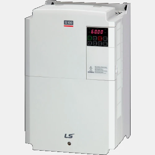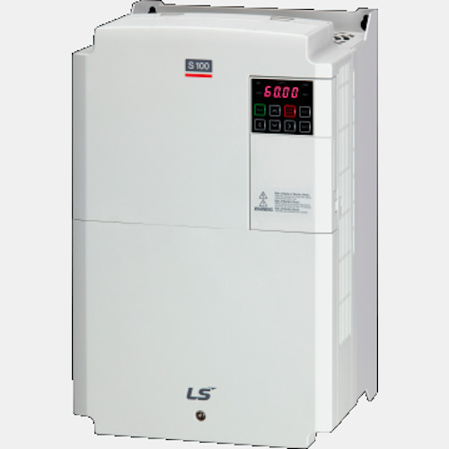 Falownik LSLV0220S100-4EOFNS LG o mocy 22/30 kW zasilany jest napięciem 3x400 VAC. Przetwornik LSLV0220S100-4EOFNS dedykowany jest do pracy z trójfazowymi silnikami o mocy do 22 kW. Prąd wyjściowy tego invertera szacowany jest na poziomie 27/35A odpowiednio dla pracy lekkiej i ciężkiej, zaś pobór prądu 50,7/65,7A. Częstotliwość wyjściowa falowników S100 standard LS wynosi odpowiednio 400 Hz przy sterowaniu skalarnym oraz 120 Hz przy wektorowym sterowaniu. 3-fazowy falownik LSLV0220S100-4EOFNS został wyposażony w: 5 wejść binarnych, 2 wyjścia cyfrowe, 2 wejścia analogowe oraz 1 wyjście analogowe. Dodatkowo dysponuje wejściem bezpieczeństwa STO. Komunikacja odbywa się protokołem Modbus RTU po RS485 z możliwością rozbudowy o protokołu Profibus-DP, Profinet, Ethernet/Modbus TCP-IP, CanOpen czy EtherCat. Ponadto trójfazowy falownik S100 LSLV0220S100-4EOFNS posiada wbudowany filtr EMC C3 oraz moduł hamujący, co pozwala na bezpośrednie podłączenie rezystora hamującego. Producent zaleca stosowanie rezystora 20 Ohm i 3600W. LG poleca stosowanie przy falowniku LSLV0220S100-4EOFNS dławika AC indukcyjności 0,3 mH i prądzie 68A, dławika DC indukcyjności 0,7 mH i prądzie 64A, stycznika MC-85a 85A. Wektorowy falownik S100 30/40 HP charakteryzuję się stopniem ochrony IP20, a jego wymiary wynoszą: 350x220x187mm.