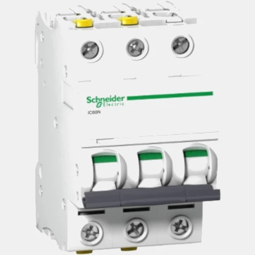Wyłącznik nadprądowy Acti9 iC60N-C2-3 rozwierne bieguny 3P o charakterystyce C. Maksymalny prąd znamionowy wynosi 2 A dla prądu przemiennego AC, natomiast napięcie udarowe 6 kV. Zabezpieczenie nadmiarowo-prądowe A9F04302 wyposażone zostało w termomagnetyczny wyzwalacz o górnej granicy aktywacji 8 x In +/- 20 % o zdolności wyłączania 6000 A Icn w 400V AC i 10 kA Icu w <= 180 VDC. Wyłącznik nadprądowy Schneider Electric jest w stanie pracować w zakresie temperatur: -35...70°C. Urządzenie posiada obudowę z tworzywa przystosowaną do montażu na szynie DIN. Wymiary nadprądówki A9F04302 to: 54mm x 91mm x 78,5mm, zaś waga wynosi 375gram. Producent podaje trwałość mechaniczną na 20 000 cykli, a trwałość elektryczną na poziomie 10000 cykli. A9F07106 wyposażony został w przyłącza w formie zacisków podwójnych .